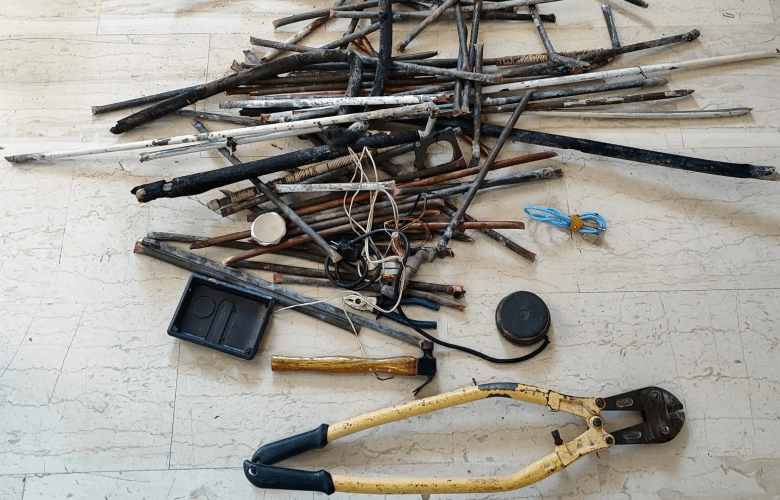 Σε έλεγχο που διενεργήθηκε, βρέθηκαν στο εσωτερικό του οχήματος και κατασχέθηκαν -65- χαλκοσωλήνες, σφυρί και κόφτης μετάλλων.