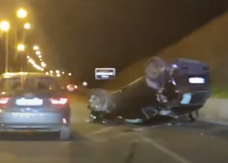 Δύο οχήματα συγκρούστηκαν στο ύψοσς της Τριανδίας και το ένα ανατράπηκε