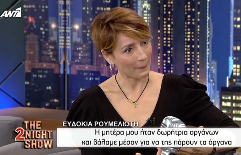 Για την απώλεια της μητέρας της και το πόσο ταλαιπωρήθηκε η οικογένεια για να δώσει τα όργανά της για να σωθούν άλλες ζωές, μίλησε η Ευδοκία Ρουμελιώτη που βρέθηκε καλεσμένη στο «The 2night Show» και μίλησε στον Γρηγόρη Αρναούτογλου.