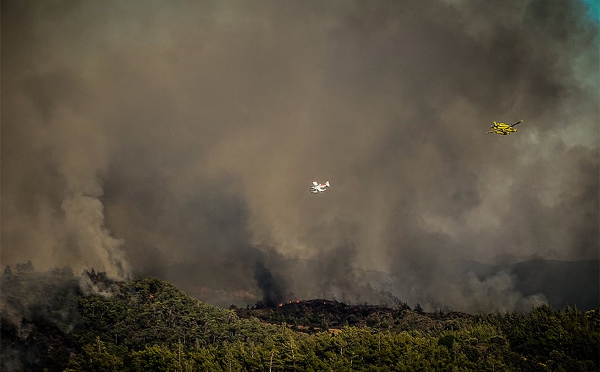 Για την κατάσβεση της πυρκαγιάς στη Ρόδο επιχειρούν 102 πυροσβέστες με 26 οχήματα, ενώ ρίψεις νερού πραγματοποιούν τέσσερα αεροσκάφη και δύο ελικόπτερα.