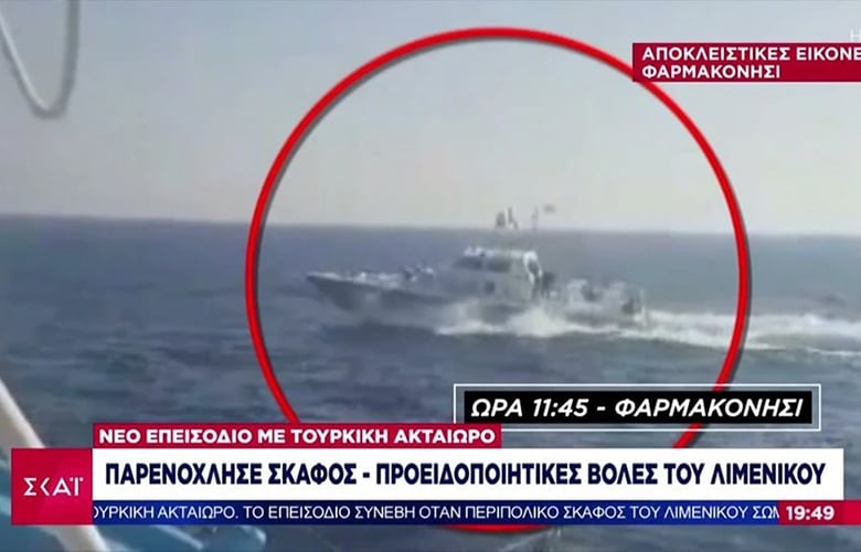 Στα αποκλειστικά που εξασφάλισε ο ΣΚΑΪ φαίνονται τα τουρκικά σκάφη μια ανάσα απ’ το Φαρμακονήσι. Οι Έλληνες ψαράδες ενημέρωσαν το λιμενικό για τις κινήσεις των Τούρκων και η αντίδραση ήταν άμεση.