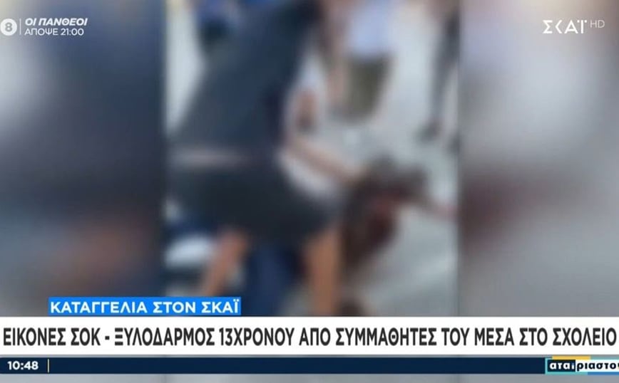 Στο βίντεο που μετέδωσε την Τετάρτη η εκπομπή του ΣΚΑΪ «Αταίριαστοι» φαίνεται το 13χρονο αγόρι να το δέχεται χτυπήματα στο κεφάλι από τα χέρια και τα πόδια ενός άλλου παιδιού.