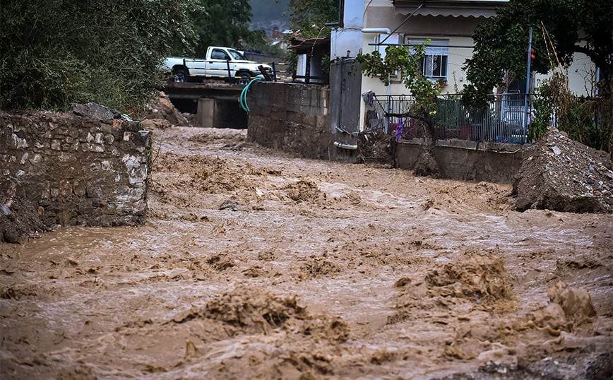 Σημειώνεται πως από χθες ο Κραυσίδωνας «είχε σπάσει», με αποτέλεσμα τεράστιοι όγκοι νερού να διοχετεύονται μέσα στους δρόμους της πόλης.