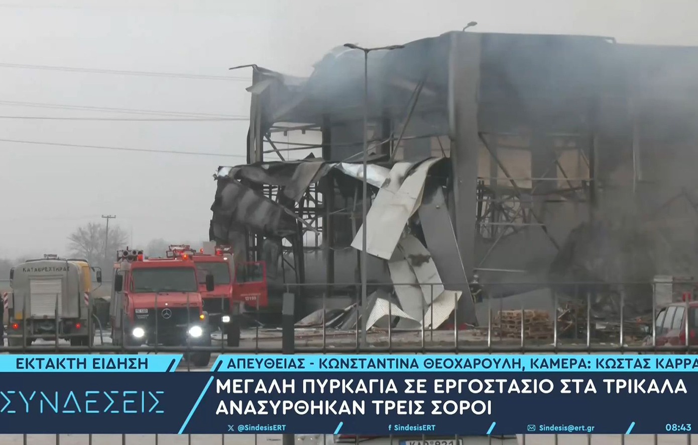 Τραγωδία σημειώθηκε στα Τρίκαλα, με την Πυροσβεστική να εντοπίζει τρεις σορούς στα συντρίμμια του εργοστασίου «Βιολάντα», το οποίο τυλίχτηκε στις φλόγες τα ξημερώματα της Δευτέρας, ενώ συνεχίζονται οι έρευνες για τις άλλες δύο αγνοούμενες.