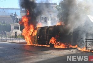 Στο σημείο θα παραμείνουν όλη τη νύχτα ισχυρές πυροσβεστικές δυνάμεις υπό τον κίνδυνο αναζωπύρωσης.