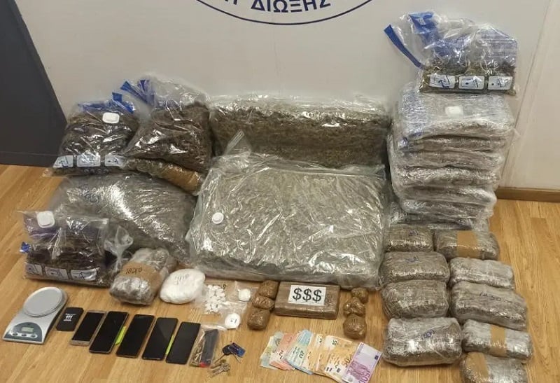 Κατασχέθηκαν πάνω από 2 κιλά κοκαΐνη, περισσότερα από 35 κιλά κάνναβη, ζυγαριές ακριβείας και 2.575 ευρώ
